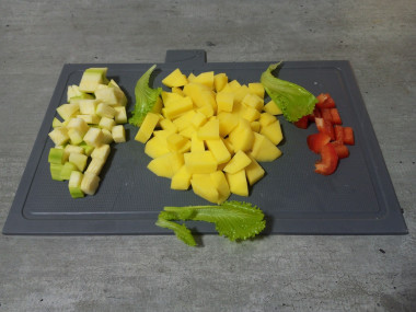 Провела эксперимент: в холодильнике имелась пара брусочков кабачков, нарезала их кубиками и добавила в суп.