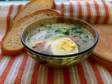 Целой курицы у меня не было , поэтому использовала четвертинку. Все делала по рецепту. Мне по вкусу как и автору , заранее сваренное яйцо, половинку которого я добавила в суп уже в тарелке. Также можете в сыром виде взболтать яйцо в миске и вылить в кипящий суп.