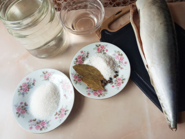 Как сделать маринад для скумбрии? Подготовьте необходимые продукты. Если рыба замороженная, то её предварительно надо разморозить. Делать это лучше постепенно, в холодильнике, чтобы она не развалилась при нарезке. Тушку скумбрии почистите и выпотрошите, тщательно убрав все внутренности и черную пленочку. Воду возьмите фильтрованную или бутилированную.