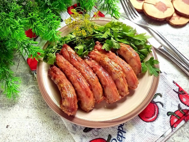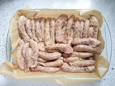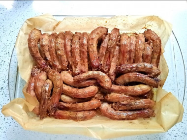 Мне очень захотелось запеченой курочки. Предпочитаю "костлявые" части этой птицы). Поэтому запекла шейки по рецепту курицы кусочками в духовке.
