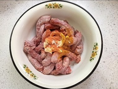 Для соуса смешала майонез на перепелиных яйцах, свежий чеснок, паприку, карри и немножко розовой соли. Шейки сложила в плотный пакет, выложила к ним соус и хорошо перемешала. Прямо в пакете оставила мариноваться на ночь в холодильнике.
