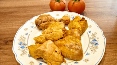 Чтобы курочка получилась с хрустящей корочкой со всех сторон, переверните кусочки за 10-15 минут до готовности.