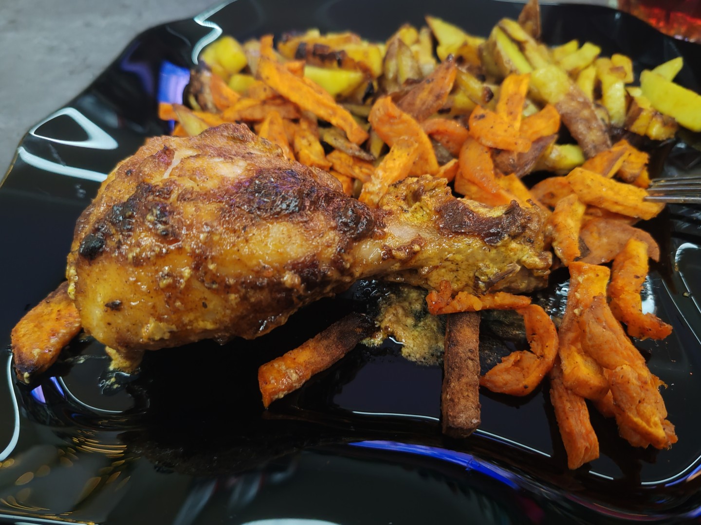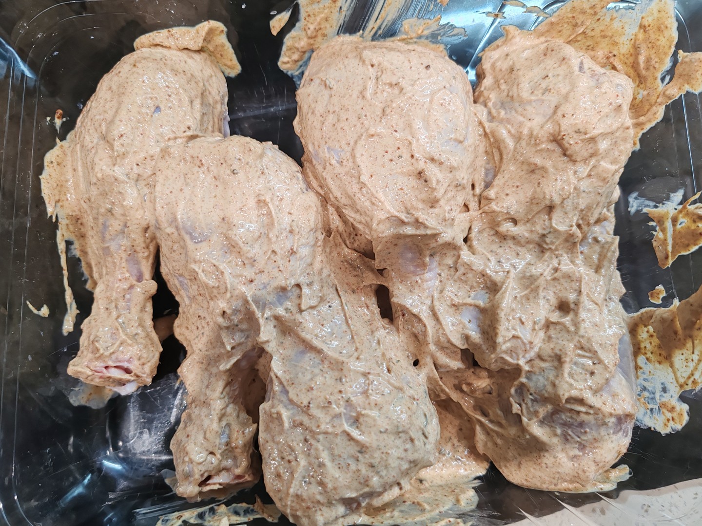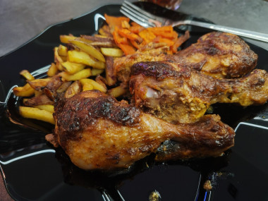 Вкусная курочка вышла по этому рецепту. Так как голени местами толстоваты, то хотелось бы помариновать подольше, но времени не было. Но даже так получилось вкусно, кожица пропитана специями, а внутри мясо нежное и тает во рту. Мариновала сразу в форме для запекания, так меньше посуды грязной остаётся)