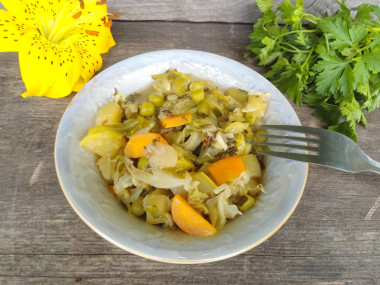 Есть свежие овощи на огороде, почему бы не побаловать себя лёгким блюдом в жаркий день. Сделала овощное рагу с капустой по этому рецепту. Все овощи собрала с грядки свежими, помыла, почистила и порезала. Не оказалось только болгарского перца. Готовила рагу по описанию в рецепте, поочередно добавляя овощи. Тушила в общей сложности минут 25. От себя добавила в рагу хмели-сунели. Аромат был сногсшибательный. Простое и быстрое приготовление. Мне нравится, что молодые овощи готовятся быстро) Постное и вкусное рагу из домашних овощей подавала на ужин как гарнир, а можно и просто так кушать. Кстати, вкусно как в тёплом, так и в холодном виде. Отличный рецепт! Советую всем приготовить) благодарю автора!
