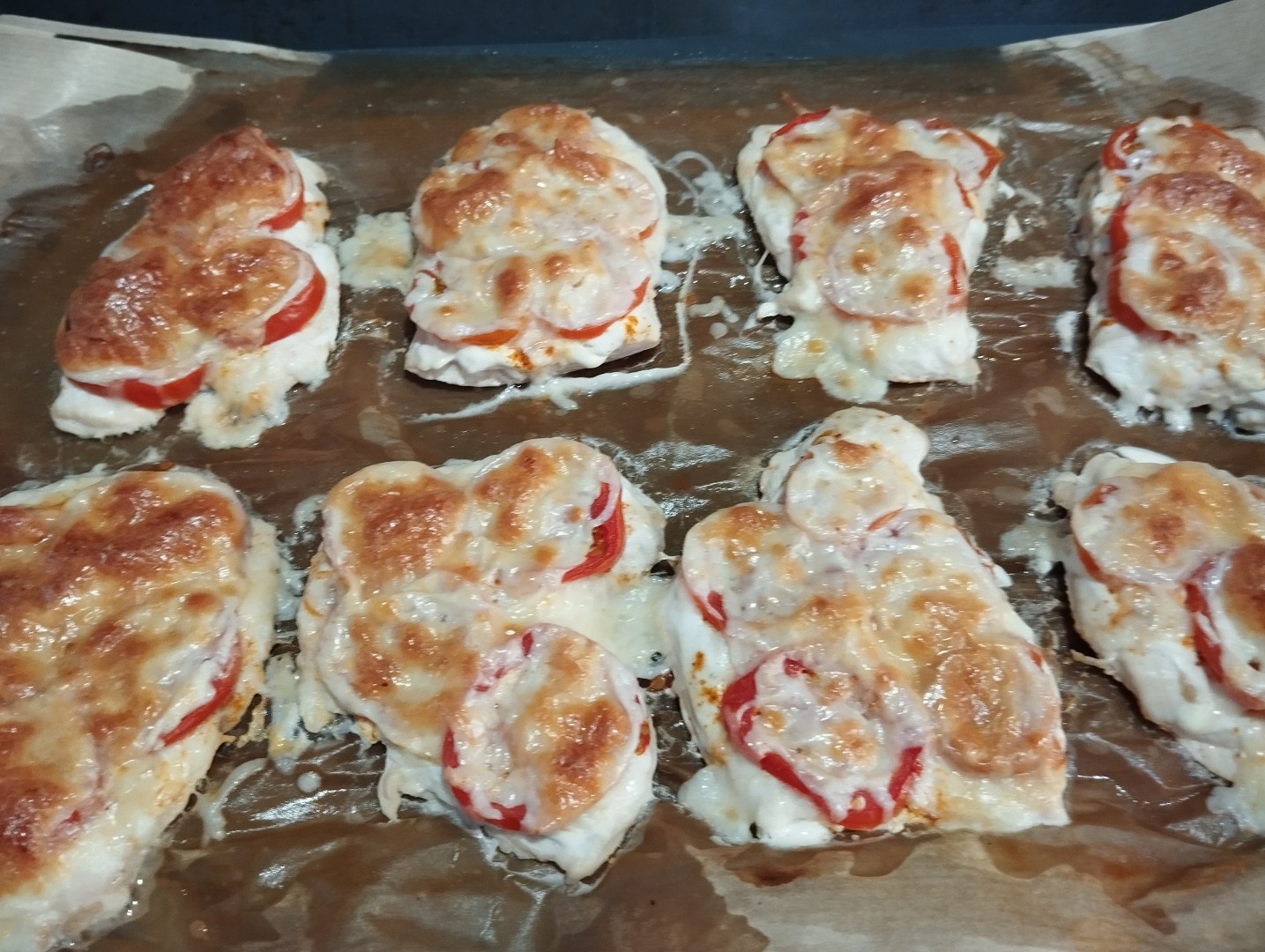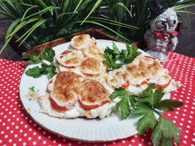 Курица с сыром и помидорами в духовке запечённая получилась очень вкусной, аппетитной и сытной. Мясо вышло сочное, благодаря помидорами, и нежное за счёт отбивания. Прекрасный ужин. Всем блюдо очень понравилось. Подавала курочку с картофельным пюре. Отличный рецепт) Всем советую попробовать. Благодарю автора!