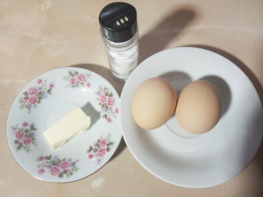 Как сделать яичницу в микроволновке в тарелке? Подготовьте все необходимые ингредиенты. Сливочное необходимо будет для смазки тарелки, можете заменить его растительным маслом.