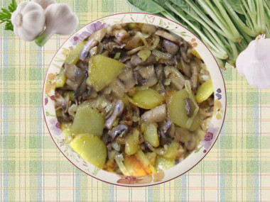 Мне больше нравится вариант, когда обжариваем все ингредиенты одновременно, но по отдельности, потому как грибы не пересушиваются, остаются нежными.