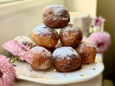Готовые шарики снимайте шумовкой на тарелку, застеленную салфетками. Это необходимо для того, чтобы с них стек лишнее масло. Затем переложите на другую тарелку, посыпьте сахарной пудрой и угощайтесь. Приятного аппетита!