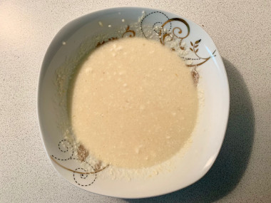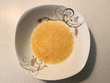 Немного перемешайте смесь венчиком, чтобы сахар вмешался в яйца.