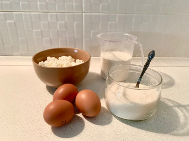Как пожарить шарики из теста в масле? Подготовьте необходимые ингредиенты. Творог берите натуральный, качественный. О том, как подобрать творог для теста, читайте в отдельной статье, ссылка в конце рецепта. Муку заранее просейте. Так она насытится кислородом, и готовые изделия получатся нежнее. В просторной чаше соедините яйца с необходимым количеством сахара. Сладость можете регулировать по своему вкусу.