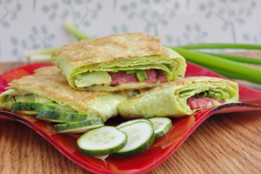 Теперь подготовьте кляр и лаваш. Лаваш очень быстро сохнет, поэтому работать с ним нужно в последнюю очередь, когда начинка и кляр уже будут подготовлены. До этого лаваш лучше хранить в герметично закрытом пакете. Вместо армянского лаваша можете также использовать пшеничный ролл. О том, как правильно выбирать лаваш, читайте в конце рецепта.