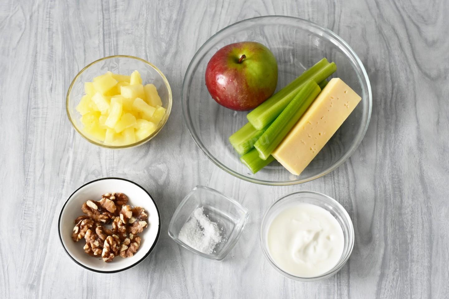 Шаг 1. Как сделать салат с сельдереем, ананасом, яблоком и сыром?