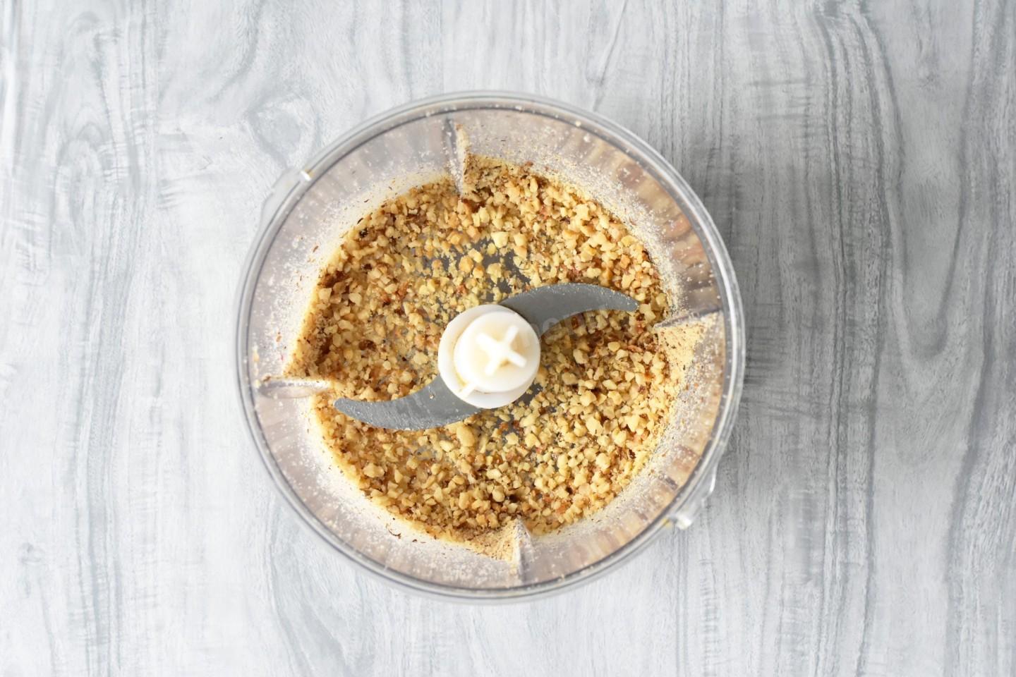 Орехи тщательно промойте, пока вода не станет чистой. Затем прокалите, помешивая, на сухой сковороде. Измельчите орехи в блендере в мелкую крошку или порубите ножом. Грецкие орехи можете заменить на другие орехи по своему вкусу - фундук, пекан и т. д.