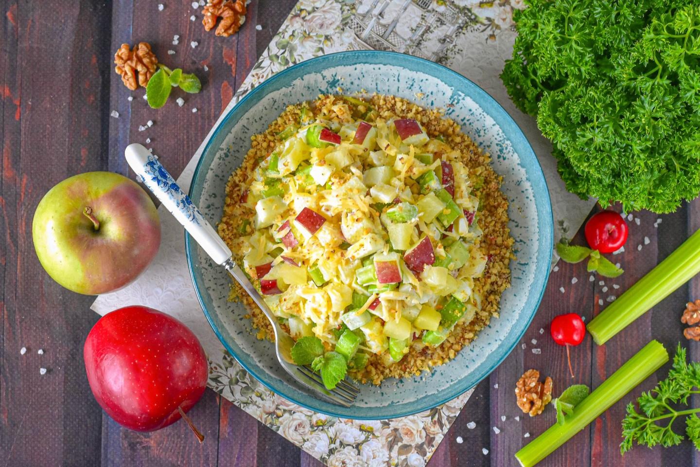 Этот витаминный салат – настоящая находка для здоровья. Сельдерей и яблоки богаты клетчаткой для пищеварения, ананас содержит бромелайн, помогающий усвоению белка, а грецкие орехи – источник ценных омега-кислот. Это блюдо низкокалорийное, легко усваивается и дарит энергию.