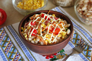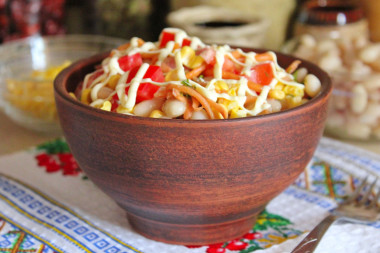Салат кукуруза фасоль морковь достаточно сочный, в меру острый со сладким привкусом благодаря кукурузе. Его обязательно нужно попробовать приготовить. Вы не пожалеете!