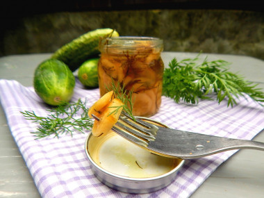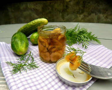 С горчицей огурчики получаются интересными и хрустящими. Кто ищет, может посмотреть и такой рецепт - огурцы с зернистой горчицей.