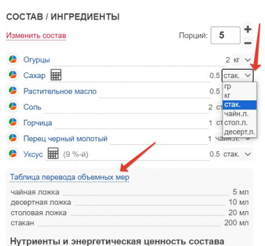 Здравствуйте, Мария Ерофеева! На сайте количество жидких и сыпучих ингредиентов указывается из расчета на стакан объемом 200 мл. Также вы можете воспользоваться функцией пересчета количества ингредиентов в другие единицы измерения.