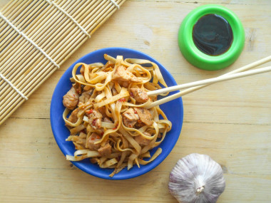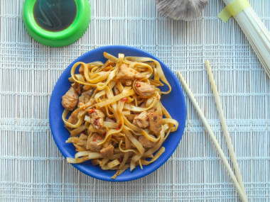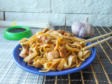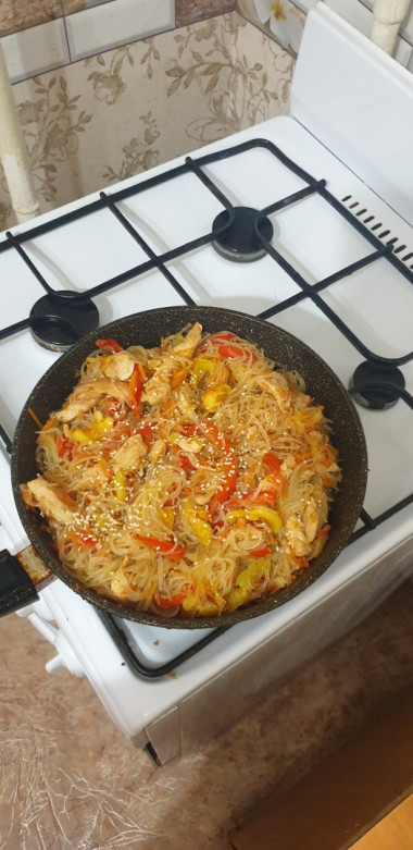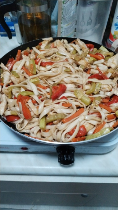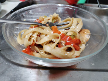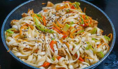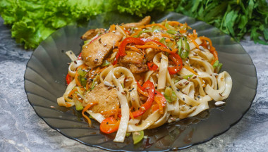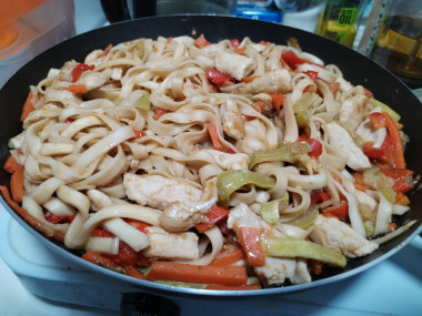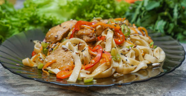 Удон с курицей и овощами