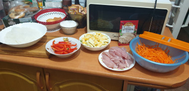Как сделать удон с курицей и овощами? Подготовьте необходимые ингредиенты.