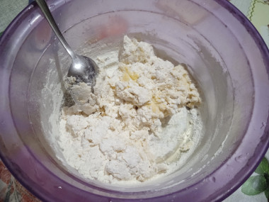 Перемешайте, чтобы яйцо разошлось равномерно по муке.