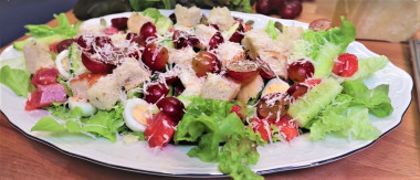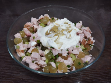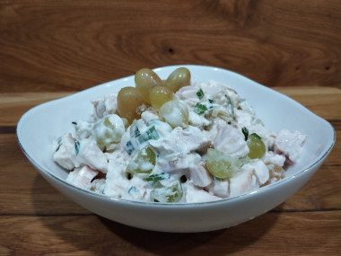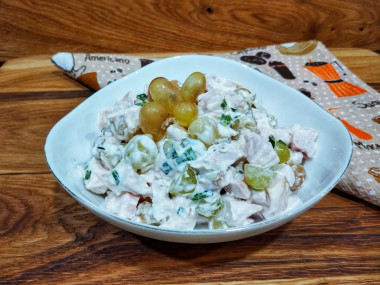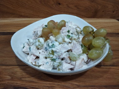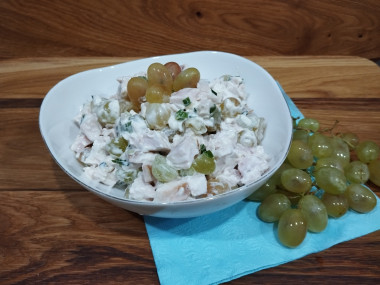 Салат очень понравился. Оказалось,что виноград отлично сочетается с копчёной курочкой,придавая салату сочность.