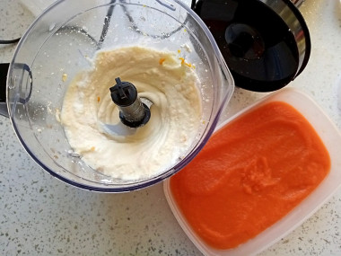 Тщательно взбейте все блендером. Должна получиться густая мягкая и однородная масса без кусочков тыквы или крупинок творога. Можно взбить все по-отдельности, а потом соединить и перемешать, но я за убыстрение и оптимизацию процесса готовки там, где это возможно.