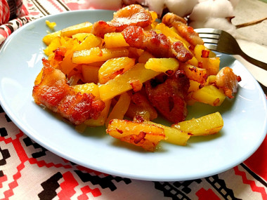 На ужин решила приготовить жареную свинину с картошкой. Рецепт проверенный, готовлю по нему уже не один раз. Мясо получается сочным и ароматным, а картофель хрустящим снаружи и мягким внутри. Спасибо за отличный рецепт.