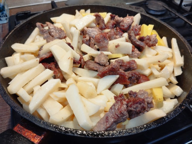 Блюдо, похожее на жаркое из мяса и картошки, есть почти в каждой кухне мира. В России оно ассоциируется с дачей, жаркой на плите или костре. На Кавказе такое жаркое часто приправляют хмели-сунели, а в Средней Азии — добавляют зиру.