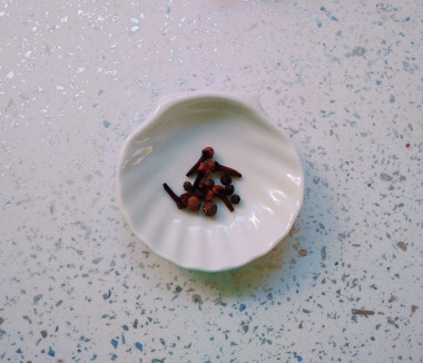 Количество специй разделите между тем количеством банок, которое планируете использовать. Например, если у вас две банки, можно положить в каждую по 2–3 горошины перца и по 1 бутону гвоздики.