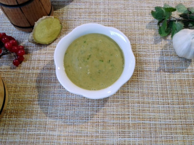 Настало время взбивания. Тщательно перемешайте смесь блендером сначала на низкой скорости, а затем на средней до полного объединения всех ингредиентов. Нужно добиться такого состояния, чтобы луковая зелень стала максимально измельчённой. Попробуйте на вкус. Если есть необходимость, добавьте соль. Соус готов!