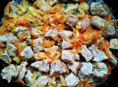 Помимо свинины в этом блюде можно использовать любое другое мясо. Учитывайте, что время приготовления, а также вкус и калорийность блюда изменятся. Например, говядина готовится дольше, чем свинина, а куриное филе или индейка меньше.