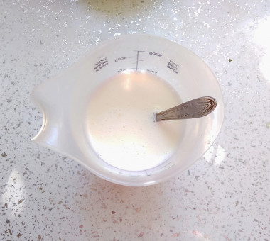 Влейте в горячее молоко разбухший желатин и перемешайте до его полного растворения. Всыпьте ванилин и снова перемешайте. Разбухший желатин можете распустить в отдельном сотейнике на медленном огне до полного растворения кристалликов. Но это делать необязательно, ведь хорошо набухший желатин быстро и без комочков растворится в горячем молоке.