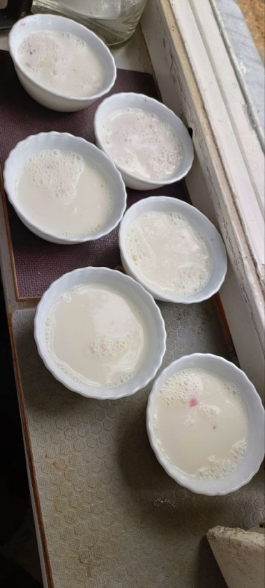 Разлейте молочную смесь по креманкам и охладите при комнатной температуре. Затем уберите в холодильник на 4-6 часов до полного застывания. Точное количество порций зависит от объема ваших креманок.