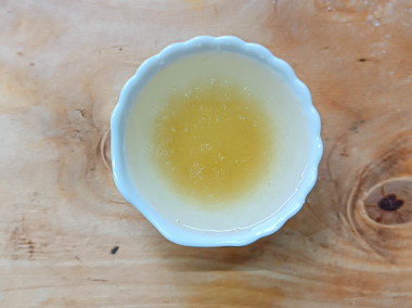 Желатин залейте холодной чистой водой и оставьте на 15 минут для набухания. Желатин лучше берите для десертов - он мельче и нейтральнее по вкусу. О тонкостях и нюансах работы с желатином читайте в отдельной статье, ссылка в конце рецепта.