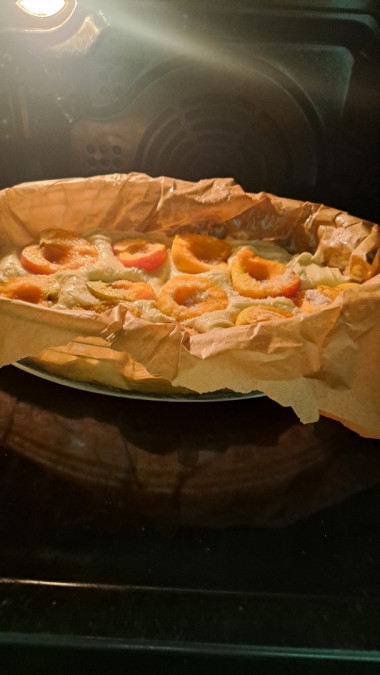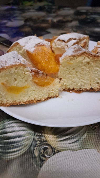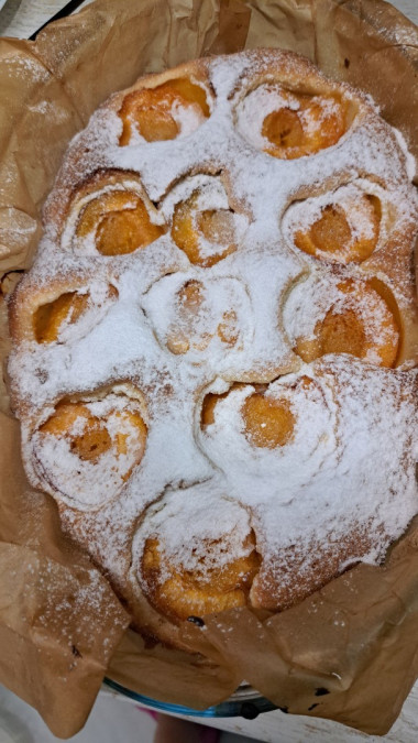 Лето всегда радует различными фруктами. В большей мере нравится выпекать пироги с добавлением абрикос. На сайте нашла такой простой рецепт, где тесто даже не нужно замешивать руками. Все ингредиенты смешиваются и сразу в форму.У меня тесто получилось густоватым, но муки по рецепту добавляла меньше положенного на несколько ложек. Именно аромат из духовки дал понять, что пирог приготовился, сверху покрылся корочкой. Очень вкусный. Как раз для приготовления в летнее время.