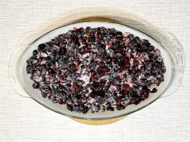 Ягоды перебрать, вымыть и обсушить. Посыпать ягоды сахаром и крахмалом. Крахмал можно использовать как картофельный, так и кукурузный. Кукурузный более нейтрален по вкусу и в пироге практически не чувствуется. Но кукурузного крахмала нужно брать в 1,5 раза больше, чем картофельного, т. е. 1 ст. л.