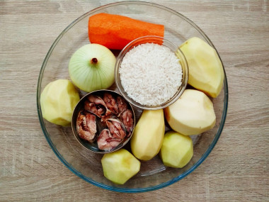 Как сварить рыбный суп из консервы скумбрия? Подготовьте продукты. Скумбрию возьмите в собственном соку, без масла, чтобы суп вышел не очень жирным. Овощи предварительно помойте. Рис подойдет любого сорта — и круглый, и длинный, и пропаренный.