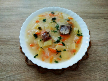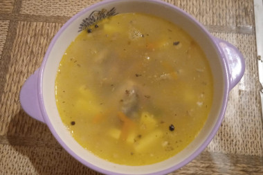 Суп с консервами так прост и быстр, и так ароматен! Хороший рецепт, я и сама так его готовлю. В тарелку надо обязательно нарезать немного чеснока, перед тем, как наливать суп. Так любители чеснока почувствуют и аромат его, и вкус. И есть ещё один секрет особенного удовольствия, доступного не каждому: горошины перца в этом супе - не для виду. Очень приятно разгрызть горошину, дать острым ощущениям разлиться по рту, только потом залить их новой ложкой душистого рыбного бульона.