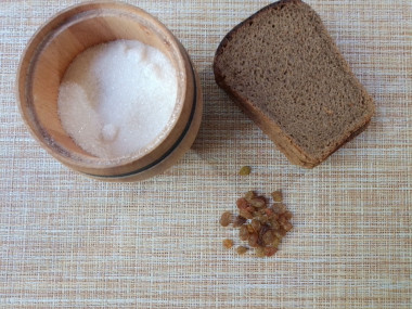Как сделать домашний хлебный квас без дрожжей? Подготовьте необходимые ингредиенты. Хлеб подойдёт любой, у меня бородинский с кориандром на горбушке для усиления аромата кваса, но подойдет любой хлеб. Чем насыщеннее цвет хлеба, тем темнее и вкуснее будет квас. Обратите внимание, что изюм мыть не надо, так как на его поверхности находятся нужные для брожения бактерии.