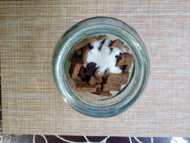 Влейте в банку чистую питьевую воду, немного не доливая до краев. Так как сухарики в процессе брожения разбухнут, вода может выливаться, если банка будет заполнена до самых краев.