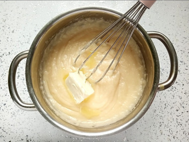 - Заваренная мучная смесь обязательно должна остыть, если добавить масло в неостывшую массу, то масло подтает и крем не взобьется.