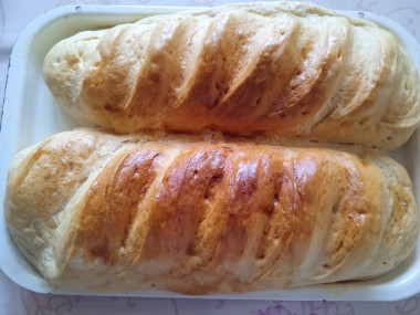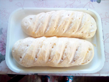 Решила сделать домашний батон и нашла французское тесто домашнее. Рецепт не сложный из продуктов, что есть под рукой. Взяла желтки домашних яиц. Вместо масла использовала маргарин сливочный. По рекомендации автора заранее достала все продукты из холодильника. Смешала маргарин с желтками и сахаром. Добавила молоко с дрожжами. В конце понемногу подсыпала муку и вымешивала тесто руками до гладкости. Оно отлипало от рук и было однородное. Подходило тесто в тепле 20 минут, поднялось великолепно. Сформировала батоны и выпекала изделия 30 минут при 180 градусах.