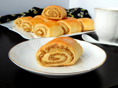 С хрустящей корочкой и мягкий внутри. К чаю, кофе и какао. Рулет с грецкими орехами можно подавать в теплом или охлажденном виде. Песочное тесто на сметане отлично сочетается с любыми орехами. Это отличный вариант для семейных и дружеских посиделок. Готовится рулет быстро и просто и доступен даже новичкам.