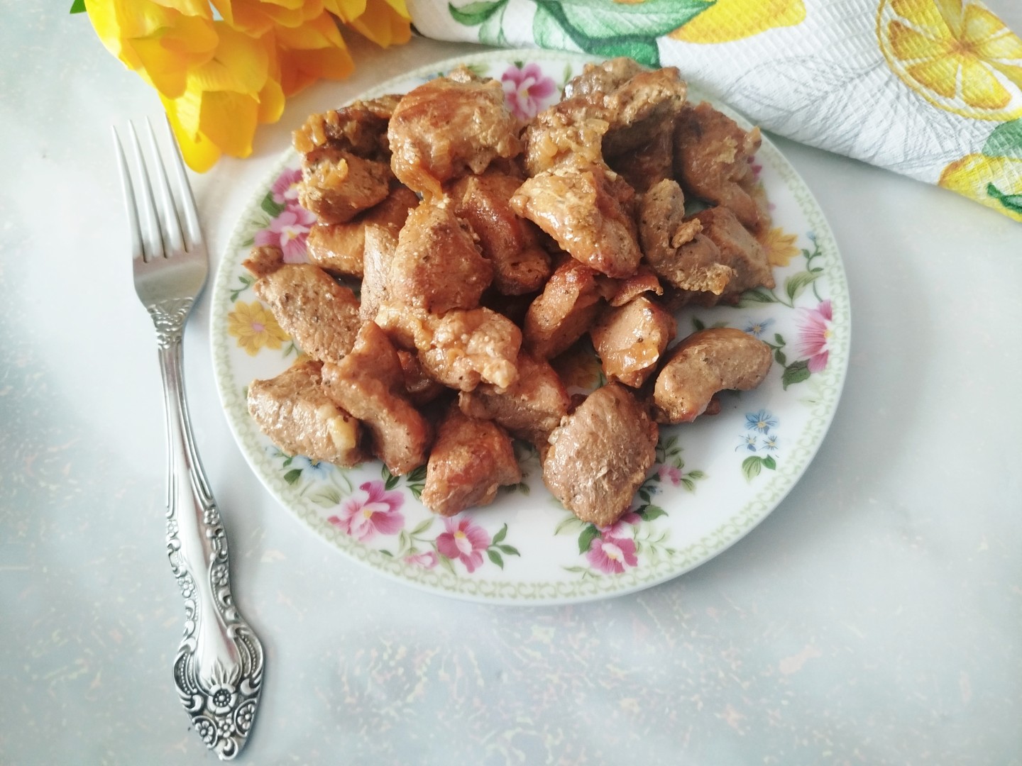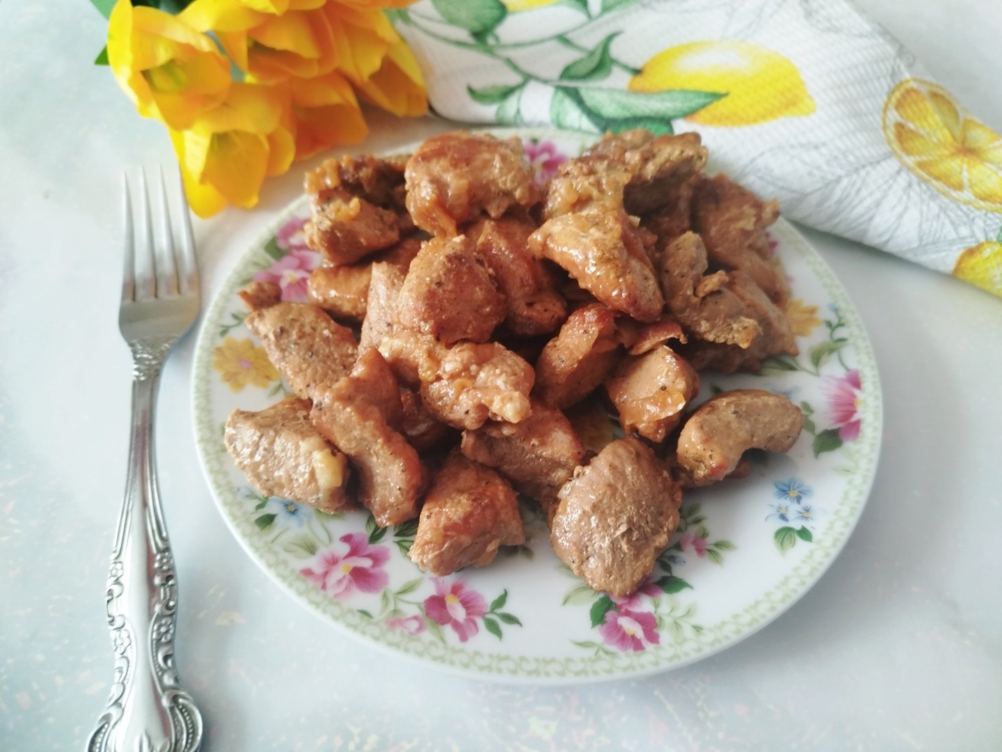 Приготовила жареное мясо на сковороде. Хотелось приготовить что-то простое и вкусное к гарниру и выбор пал на этот рецепт.