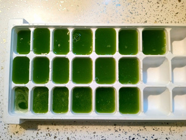 Замерзший огуречный сок аккуратно выньте из формочек, распределите по пакетикам и снова отправьте в морозилку на хранение. Огуречный сок можно добавлять в смузи или в зеленые детокс-коктейли. Приятного аппетита!