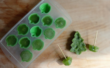Сок разлейте по формочкам, которые у вас есть для использования в морозильной камере. Отправьте формочки с соком в морозилку на несколько часов.