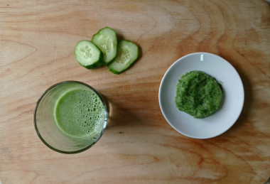 Я не жалую овощные соки, поэтому и не делаю их. А тут попался этот рецепт сок огуречный на зиму, с такими яркими и сочными фотографиями, что мне захотелось непременно попробовать приготовить такую же красоту. Поскольку для меня это был своего рода эксперимент, то я взяла только один огурец. Запах от огуречного сока стоял бесподобный. Уже только ради этого запаха свежести и весны можно делать огуречный сок. Дети, узнав про мои планы по заморозке сока, захотели его попробовать. Поэтому для удобства в две формочки, когда сок немного подмëрз, я вставила зубочистки, чтобы получились своеобразные конфеты на палочке. А жмых заморозила в форме ёлочки. Ребята с удовольствием съели огуречные "конфетки" и попросили добавки. Так что думаю, этот рецепт приживётся в нашей семье. А я рекомендую его к приготовлению!