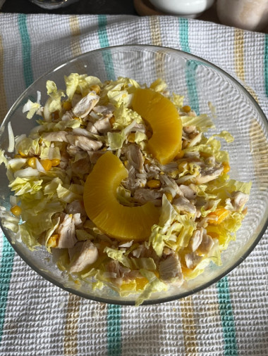 Рецепт удачный, попробую. Часто готовлю похожий салатик из курицы, пекинской капусты, но без ананасов.