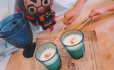 Сливочное пиво подавалось с щепоткой корицы. Юные волшебники были очень довольны и сказали, что теперь будут постоянными клиентами паба "Три метлы". Маму-колдунью они тоже угостили. Отличный напиток получился! Особенно мне понравилась воздушная пенка, вкусная, сливочная.