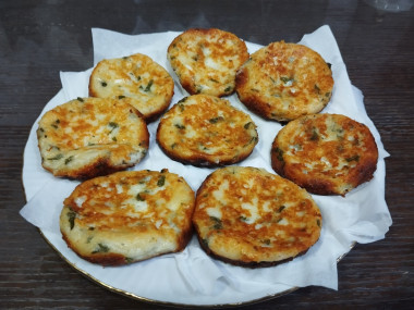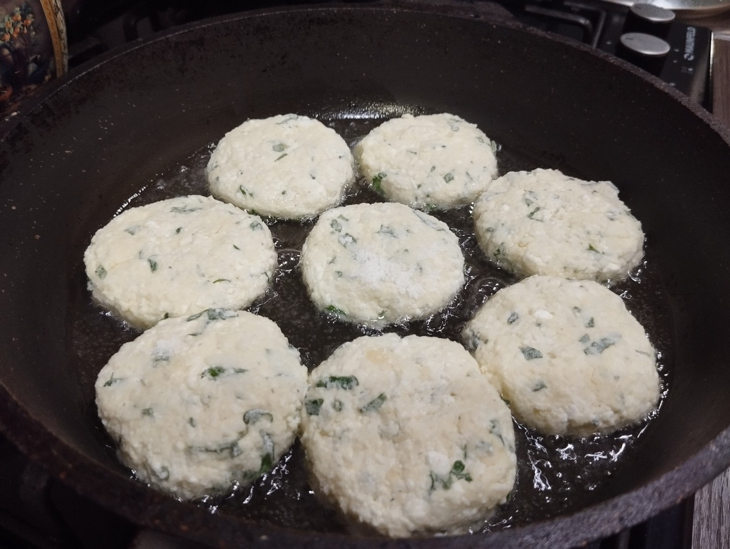 Добавление зеленого лука и укропа делает рецепт очень похожим на украинские творожники с зеленью.